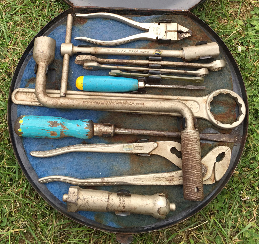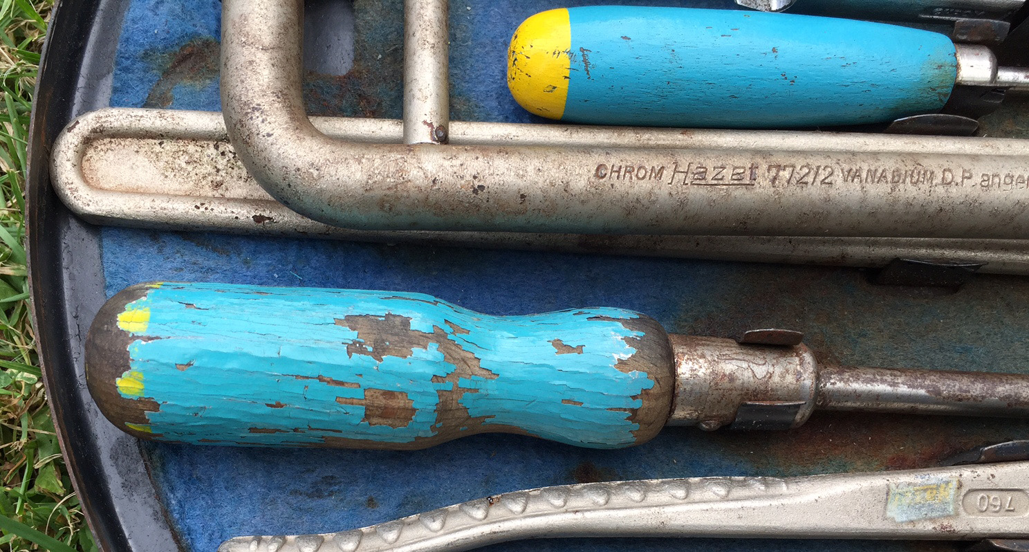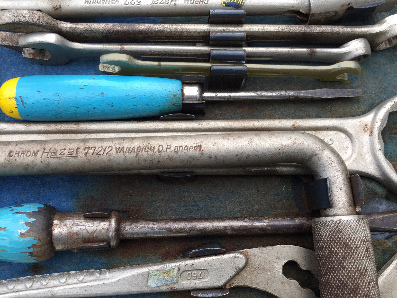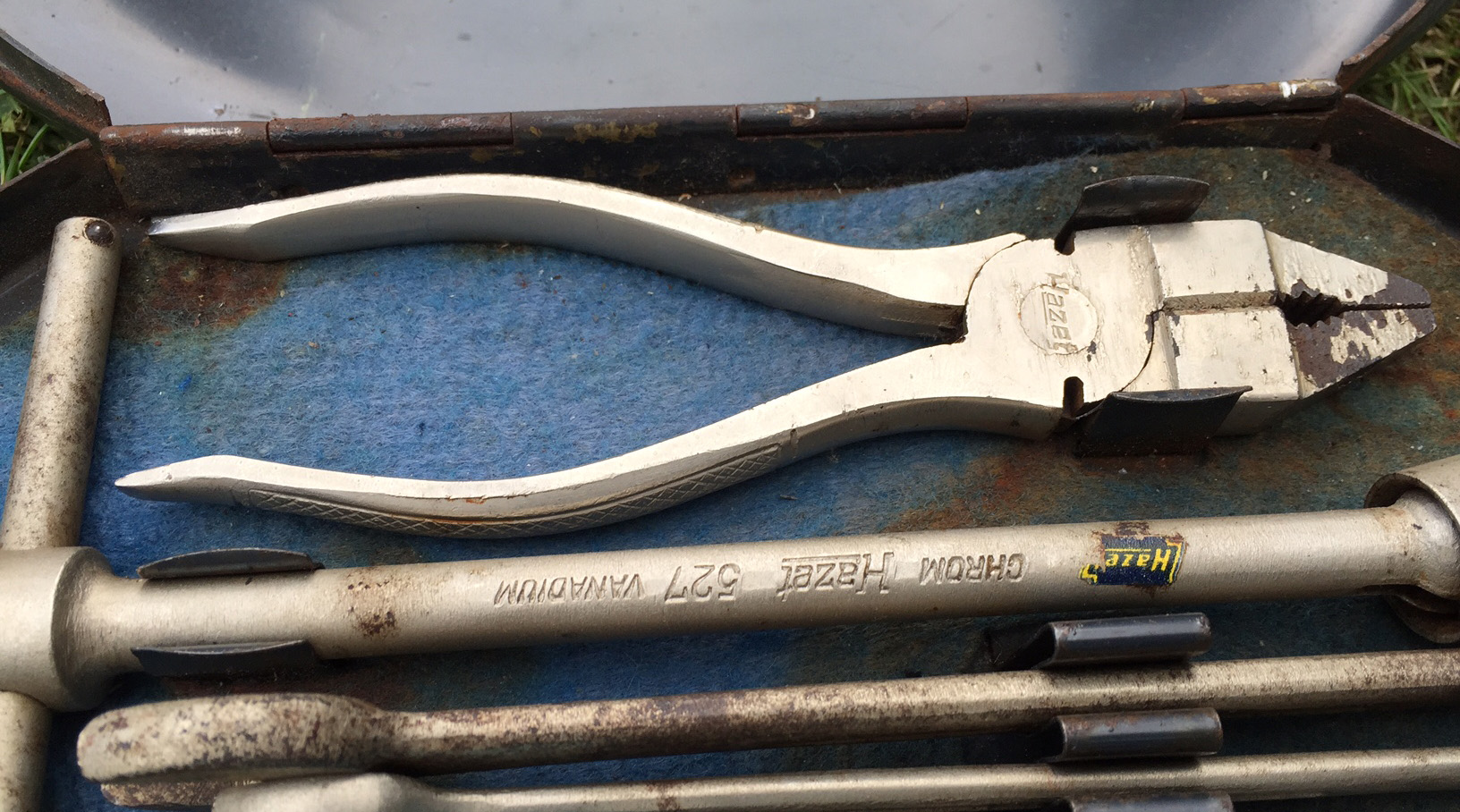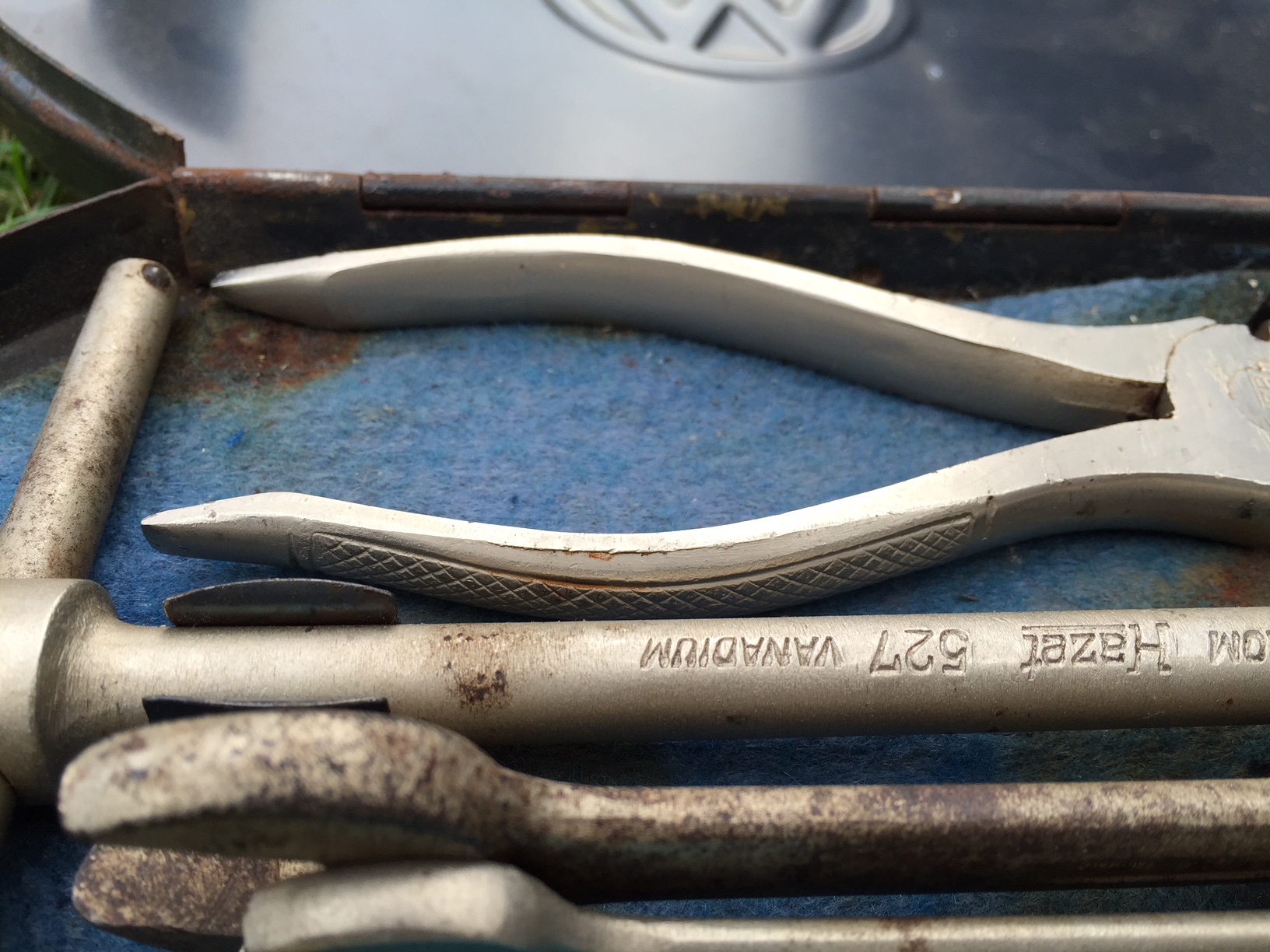 Wide ring on the back Early 527s do not say Germany on them. Checkered handles on the combination plier. No text on the screwdrivers. Small screwdriver with smooth neck.
