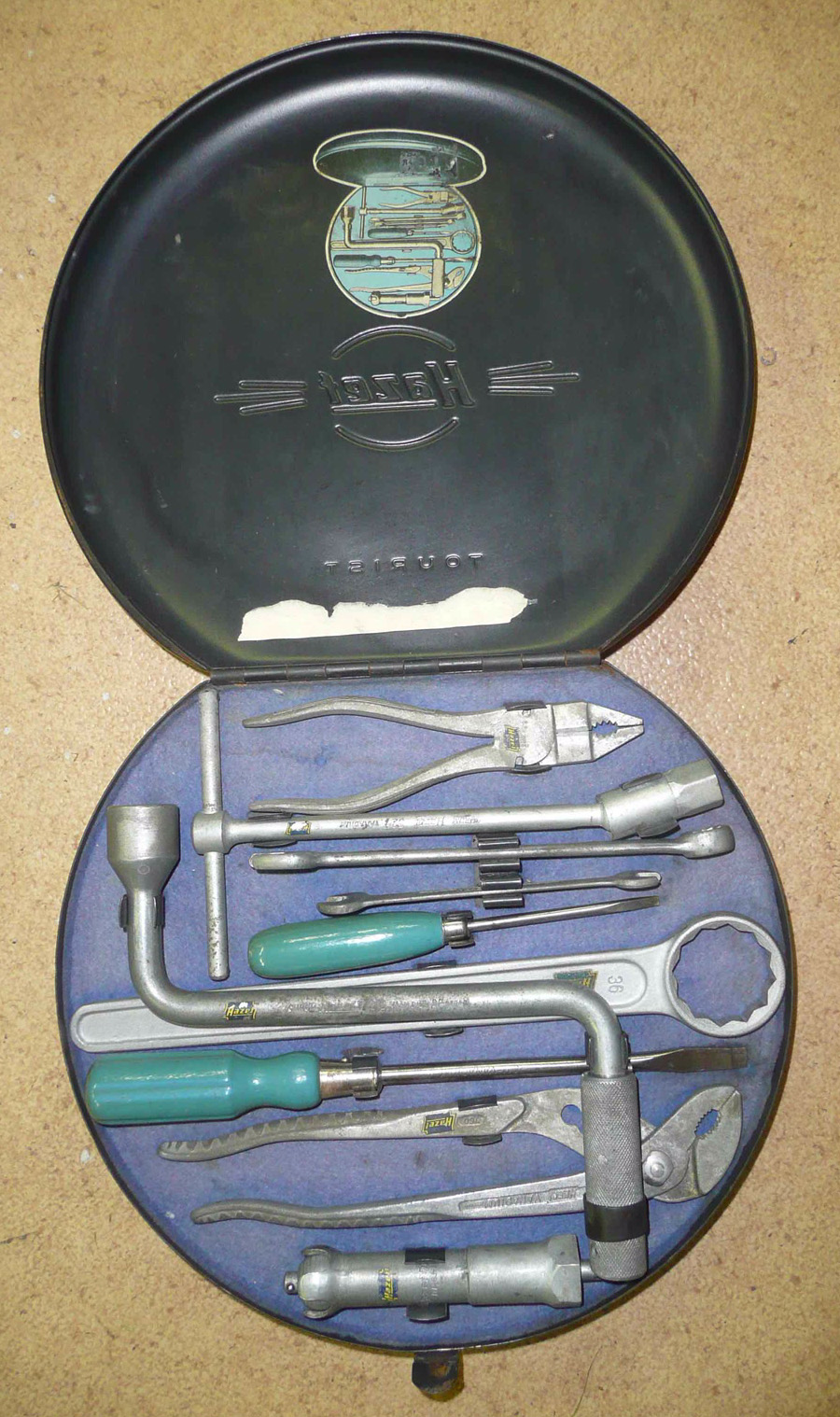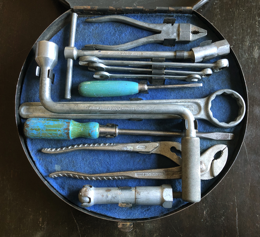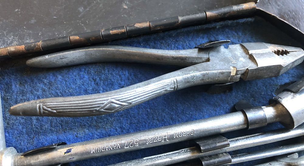 You will notice the 561 is a newer 1953-55 dull grey. Diamond combination plier. A note is posted inside this late 1952 toolkit.