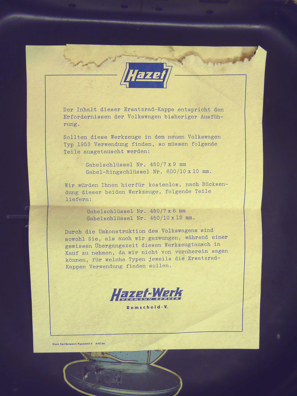 Patent angem. Here's another identical toolkit, delivered with a note inside
